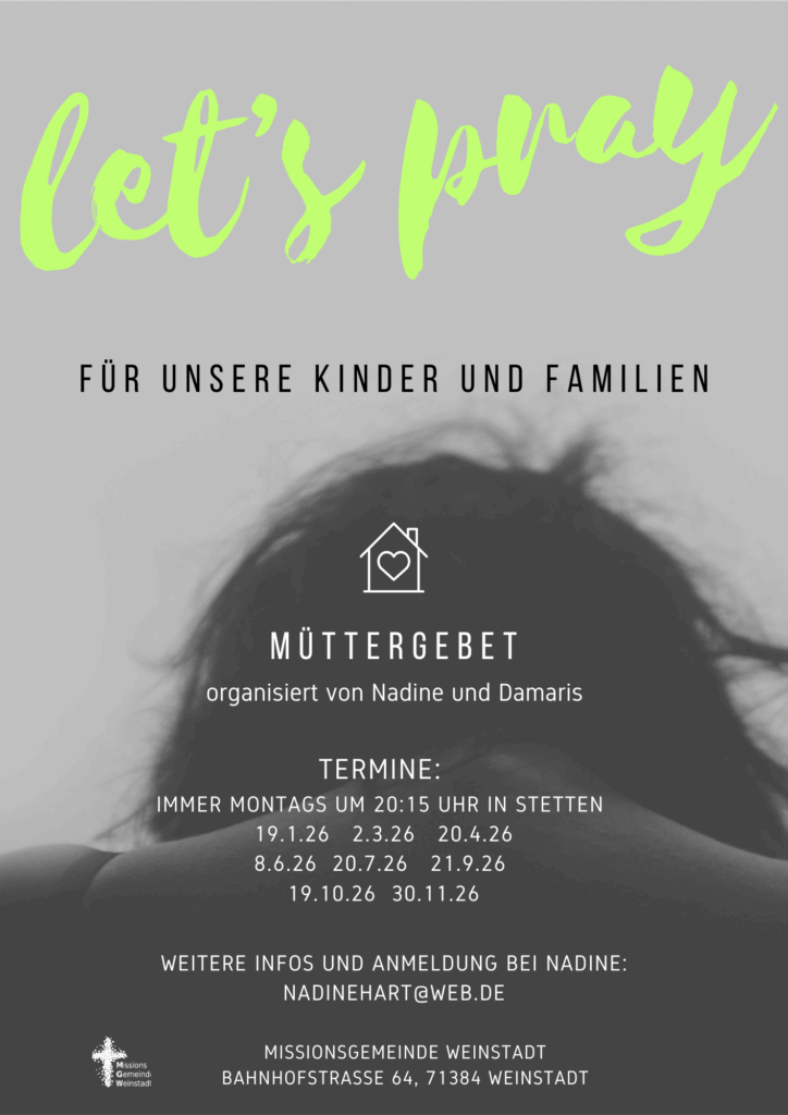 Seit vielen Jahren treffen wir uns um gemeinsam, um für unsere Kinder, Ehen und Familien zu beten.